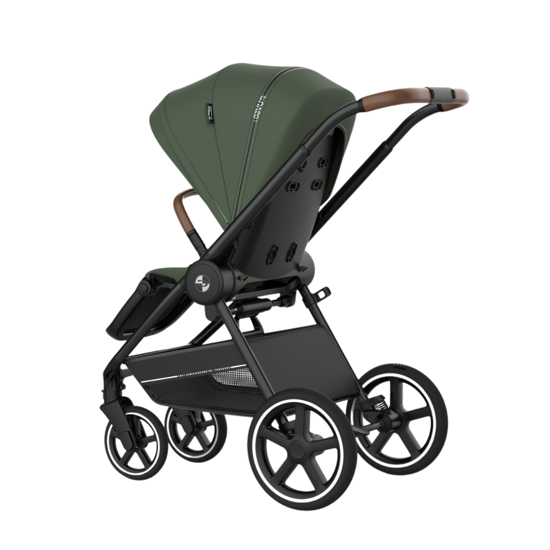 Överlägsen komfort och flexibilitet: Apollo’s sittdel anpassas enkelt från sittande läge till fullt liggande position, medan det justerbara fotstödet ytterligare höjer komfortnivån. Den smidigt vridbara och avtagbara frontbygeln underlättar för barnet att komma i och ur vagnen. Vagnen går att fälla ihop med sittdelen på, både framåtvänd och bakåtvänd.